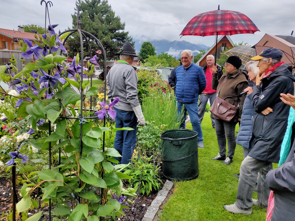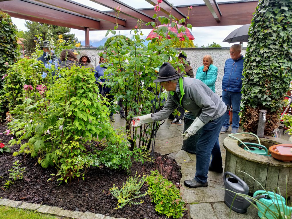 Bei leichtem Regen trafen sich Rosenliebhaber zur Rosenpflege nach der Blüte in Sulz, wo viele Fragen beantwortet und Tipps zur Rosenpflege gegeben wurden. Verblühte Rosen und blinde Triebe wurden entfernt sowie verschiedene Krankheiten der Rosen und Mittel dagegen besprochen. Wir bedanken uns bei Frau Brigitte Gut für die Möglichkeit ihren Rosengarten zu besuchen, Gebäck, Kuchen und Getränke. Eine gelungene Veranstaltung des OGV Sulz-Röthis.