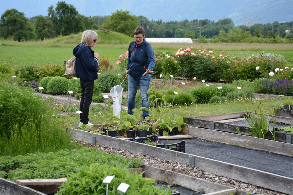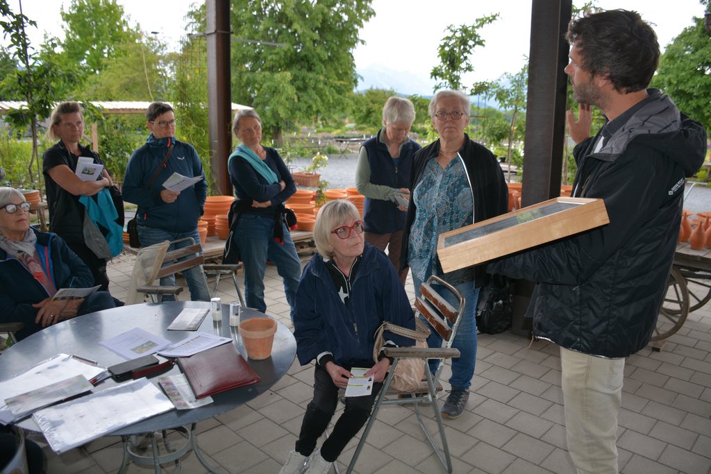Der Rundgang bot nicht nur spannende Einblicke in das Verhalten und die Lebensraumansprüche der Wildbienen, sondern zeigte auch auf, wie wichtig die passende Bepflanzung und Struktur im Garten ist. An verschiedenen Stationen in der Gärtnerei wurden Blühflächen, Trockenmauern, Totholzbereiche und andere Lebensräume vorgestellt, die gezielt zur Förderung dieser bedrohten Insektengruppe beitragen.