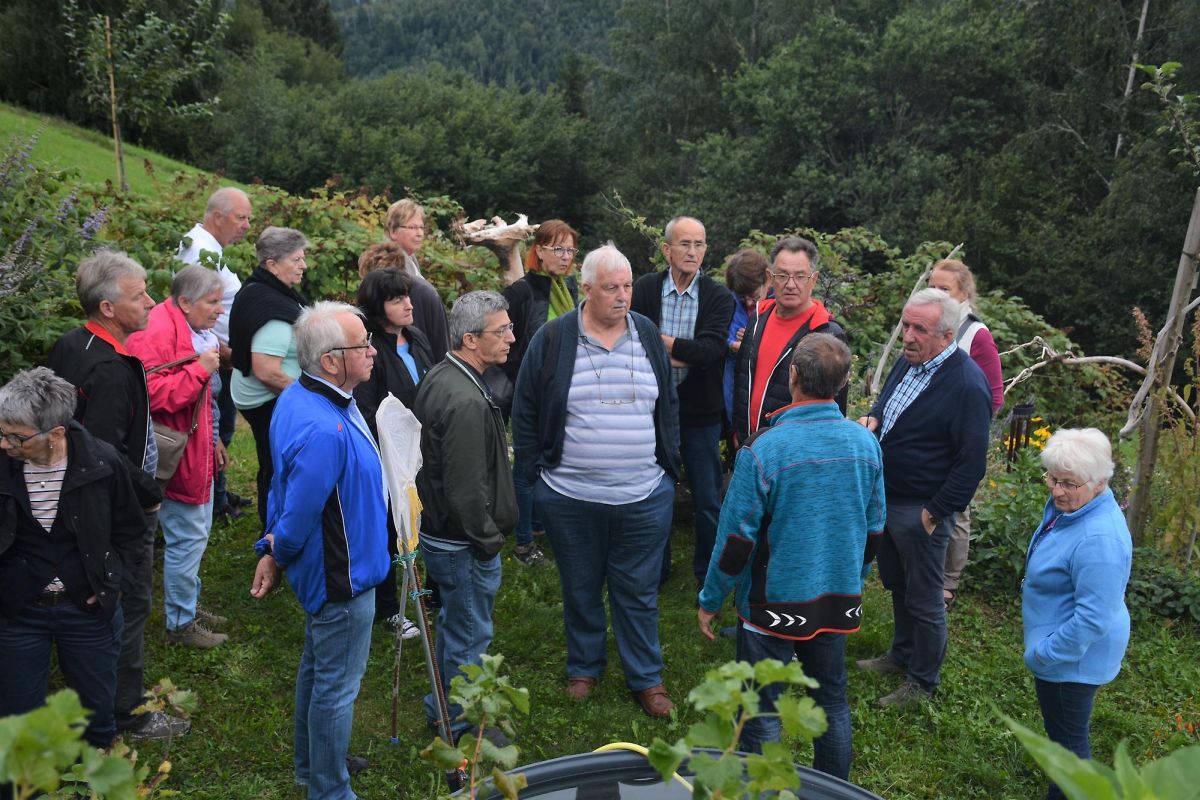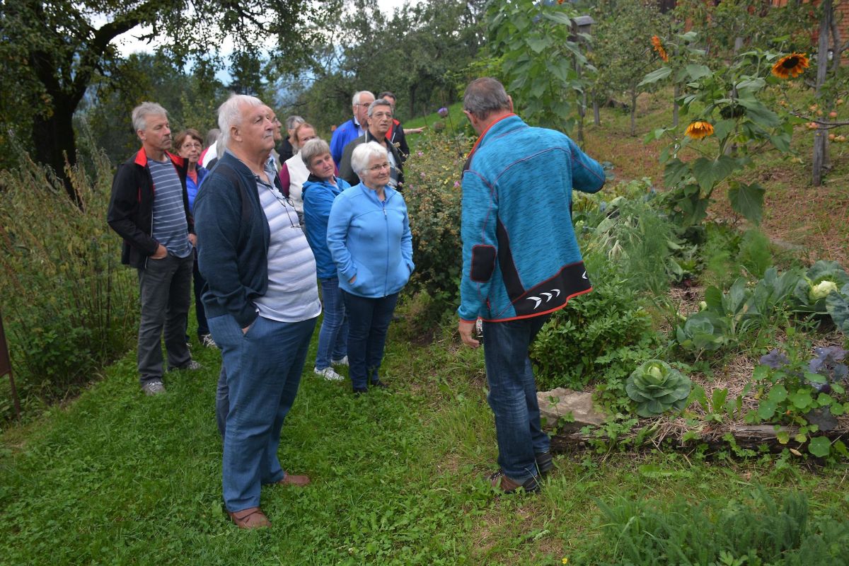 Nach der Einführung in den Betrieb auf über 900m Seehöhe wurde im Garten die Vielfalt einer Permakultur sehr gut erklärt und gezeigt.