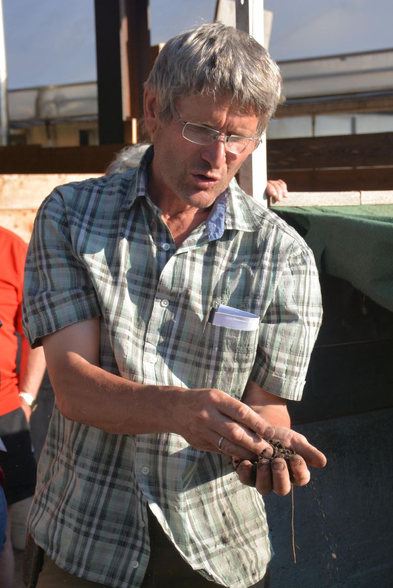 In der Bio Staudengärtnerei Elke und Thomas Kopf in Sulz, zeigte uns Thomas wie Erde für die Produktion nach der CMC Methode (Kontrolliert Mikrobiellen Kompostierung) selbst hergestellt wird.