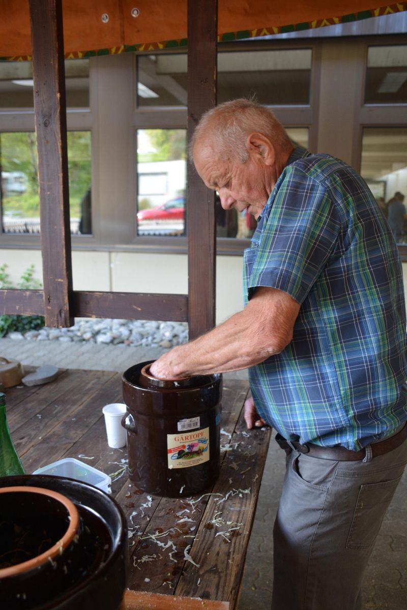 So auch in Sulz-Röthis, wo unter der Anleitung von Obmann Guntram Mündle und seinen Gartenfreunden so richtig gehobelt wurde. Mehr als 250 Kilogramm frisches biologisch angebautes Kraut wurde gehobelt und von den Besuchern und den Vereinsmitgliedern zu Sauerkraut eingestampft. Der Verein hatte zudem alle weiteren Zutaten besorgt, die Gäste mussten nur ihren Gärtopf mitbringen. Verwendet wurden die ganz klassischen Zutaten, diese bestehen aus Salz, Lorbeerblätter und Wacholderbeeren, wer mochte durfte einen Schluck Weißwein oder ein paar Apfelschnitze hinzugeben. "Wer andere Geschmäcker bevorzugt, soll diese beim Kochen beigeben", sagt Mündle, da sonst der ganze Gärtopf nach diesen Zutaten schmecken würde.