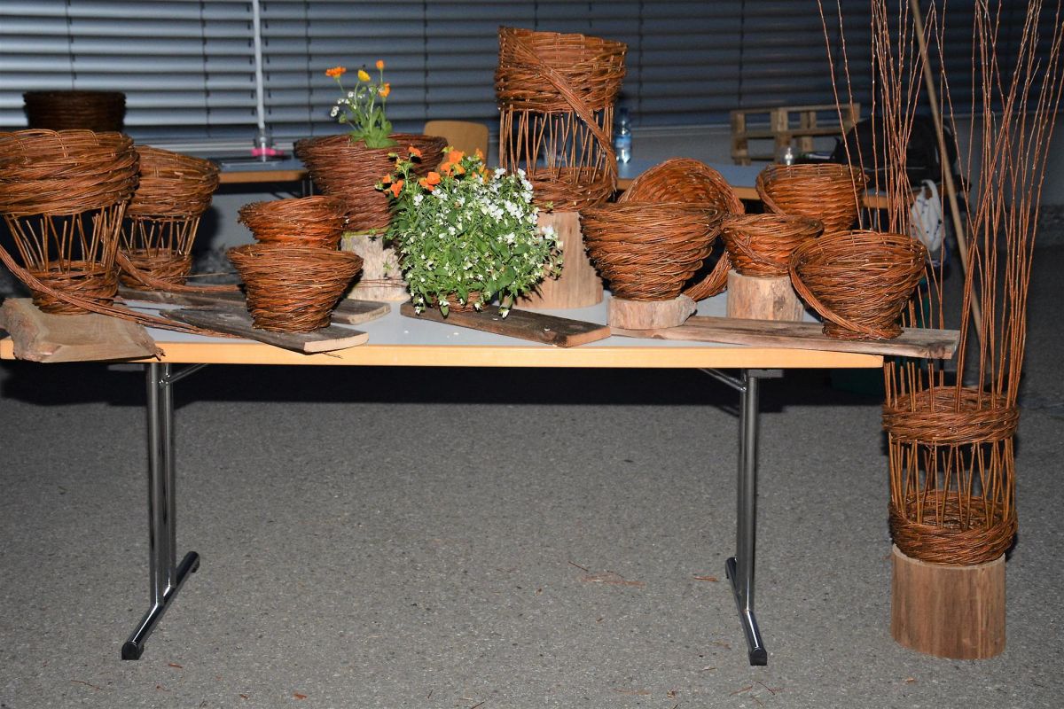 Zunächst musste man sich überlegen, ob ein Übertopf oder ein Windlicht hergestellt werden soll. Dann konnte man sich für einen Holzsockel oder ein Brett als Unterlage entscheiden. Wer beides nicht wollte, konnte ein Gefäß ohne Boden flechten. Die Weidenruten in verschiedenen Dimensionen wurden anschließend in unterschiedlichen Techniken verarbeitet. Dank der professionellen und umsichtigen Hilfe der Kursleiterinnen konnten in ca. 3 Stunden sehr kreative, dekorative Objekte präsentiert werden. Voller Stolz trugen die Hobby Flechterinnen ihr Werk nachhause. Natürlich wurde der Wunsch nach einem weiteren Flechtkurs im nächsten Jahr geäußert, den Renate und Sigrid hoffentlich erfüllen werden.