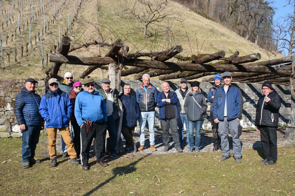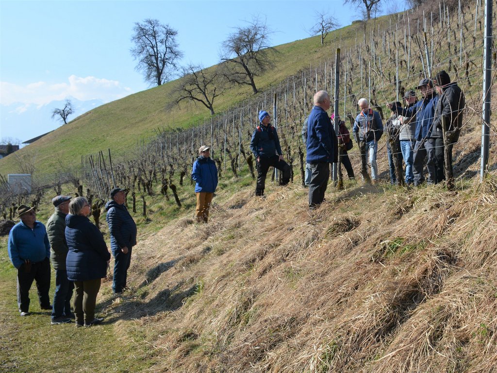 Gelungene Auftaktveranstaltung 2022 des OGV Sulz-Röthis mit 15 Teilnehmern beim Rebenschnittkurs am Sa. 5.3.22 beim Schlößle in Röthis. Miachel Nachbauer zeigte allen Interessierten die verschiedenen Schnittarten bei Blauburgunder Trauben im Weinberg und bei der Pergola.