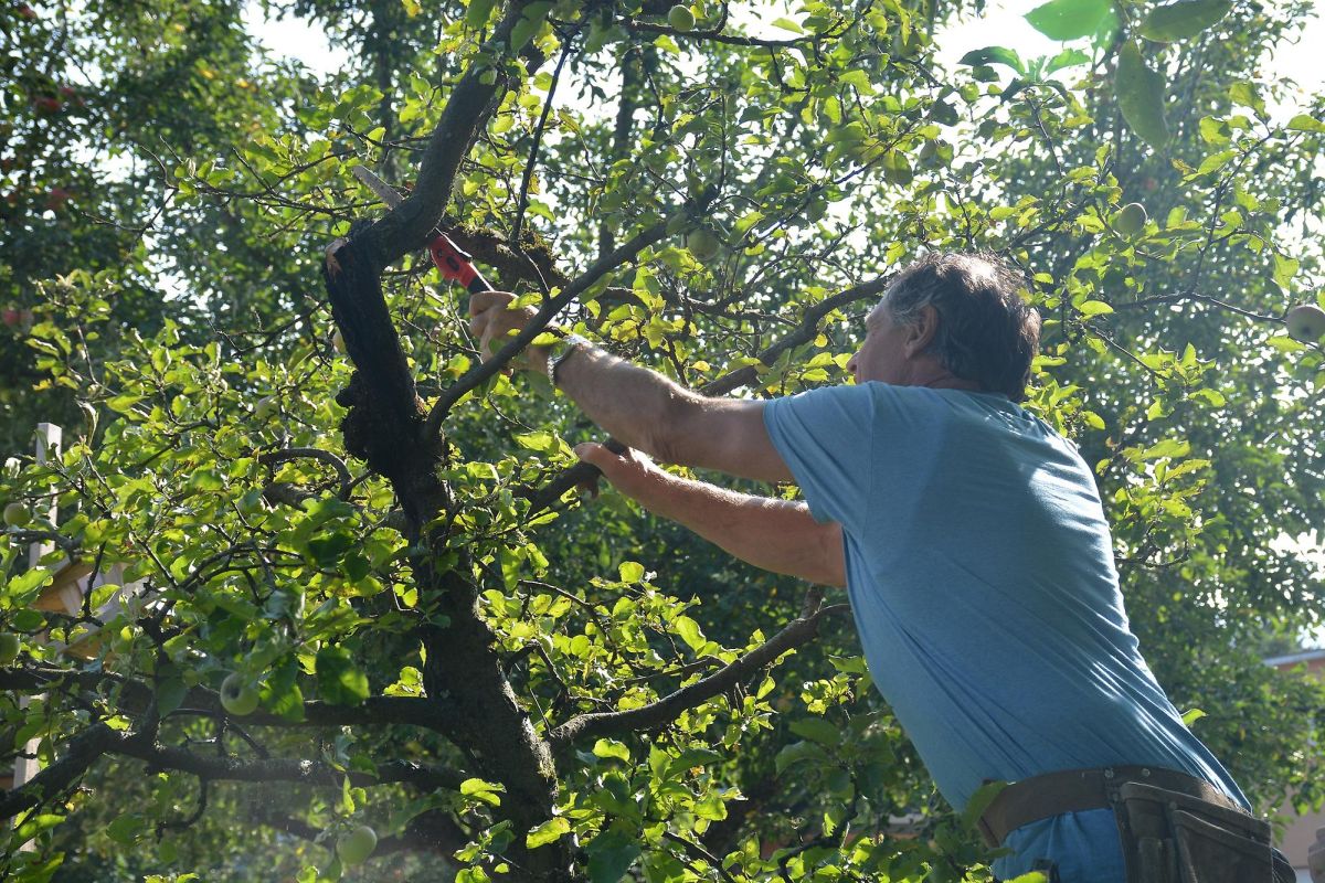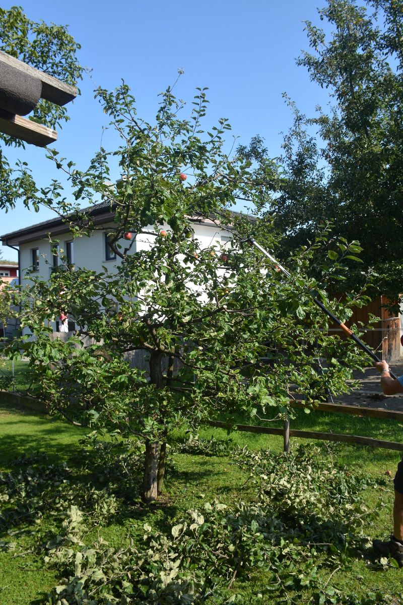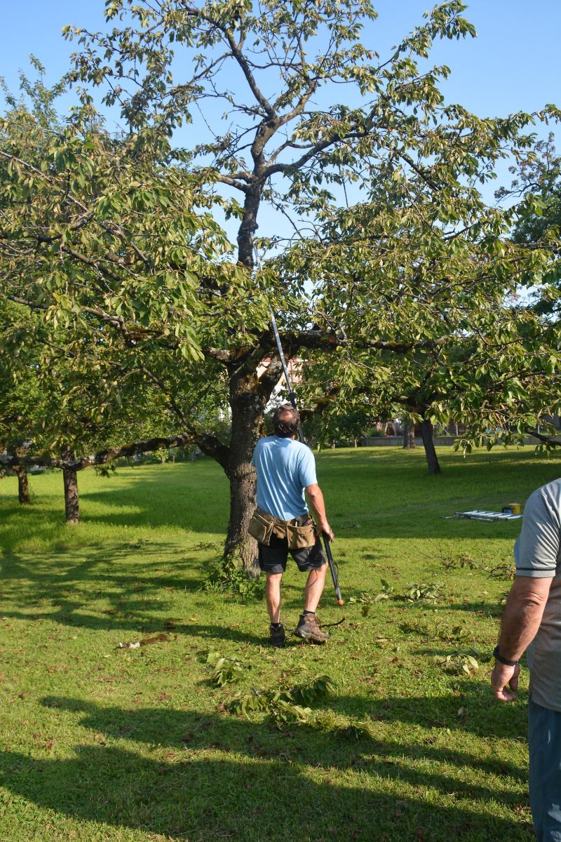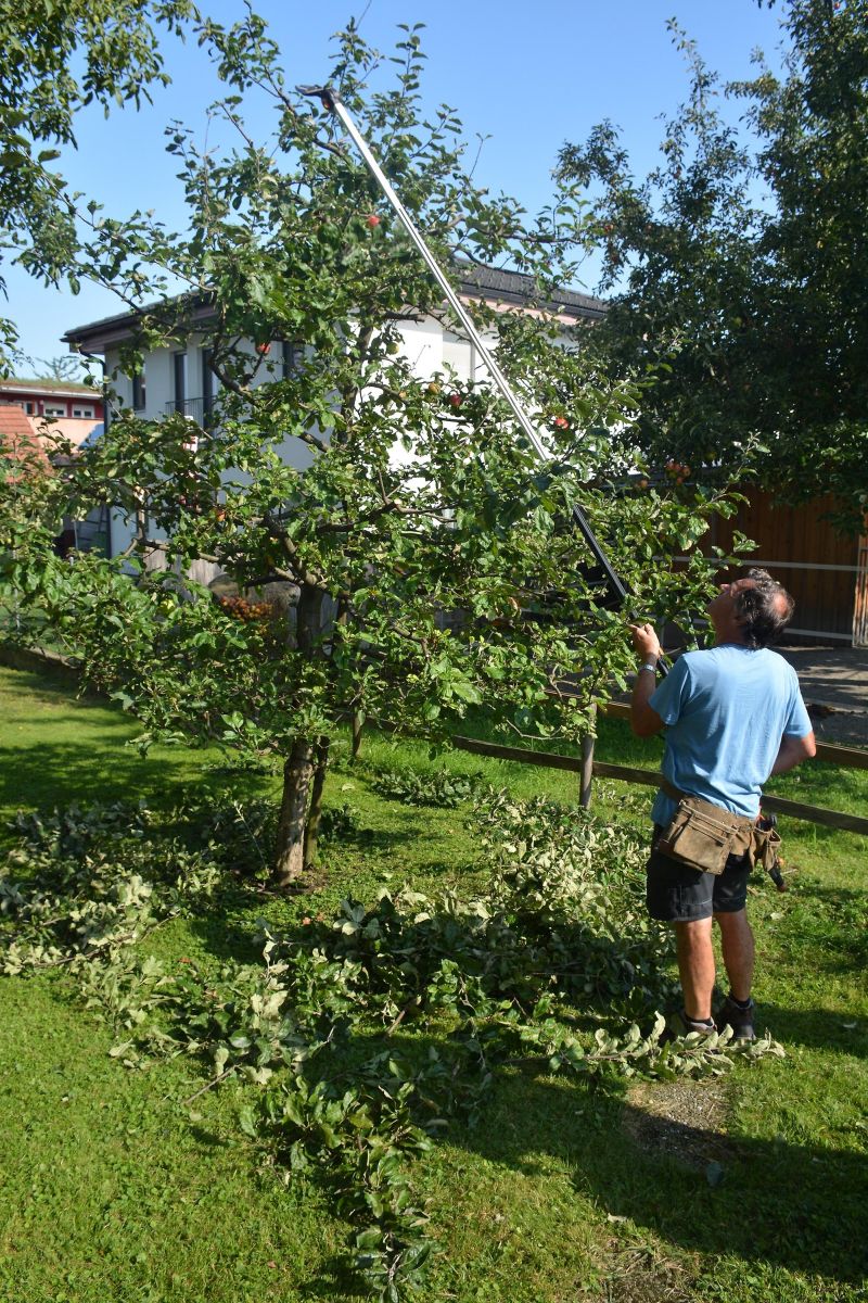 Der erste Baum, ein Kirschbaum wurde zurückgeschnitten und Äste die zu dicht aufeinander standen entfernt.