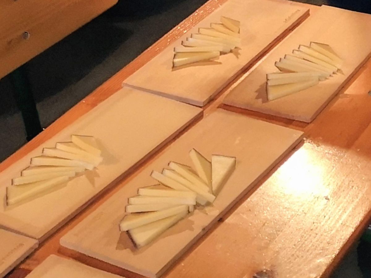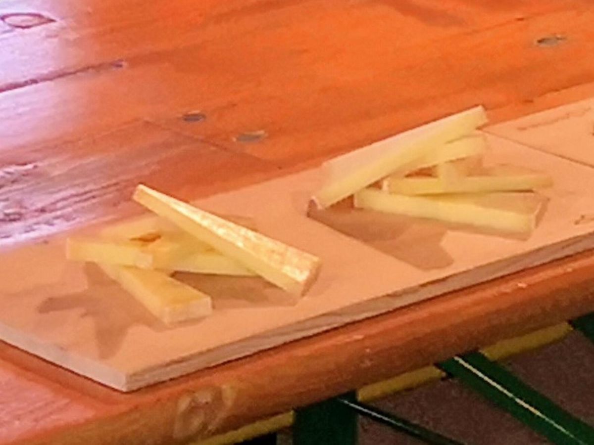 Gestartet wurde mit einem Chardonnay, begleitet von einem ganz jungen milden Käse, präsentiert von Jürgen Oberhauser. Feines Schwarzbrot und Äpfel der Sorte Elstar wurden zwischendurch zur Neutralisierung des Gaumens verkostet. Weiter ging es mit einem Weißburgunder, einem Rheinriesling gefolgt von einem Grauburgunder und begleitet von Rotweinkäse, Ziegenschnittkäse und Camembert von einer Käserei in Tirol.