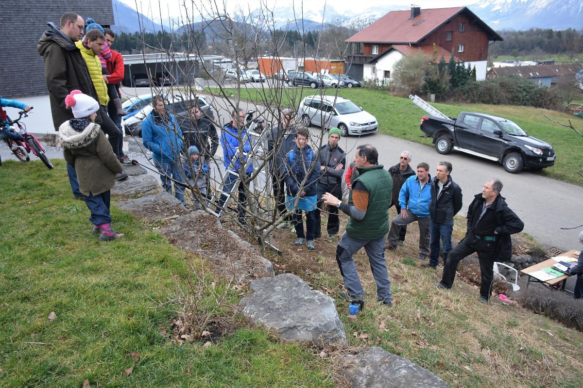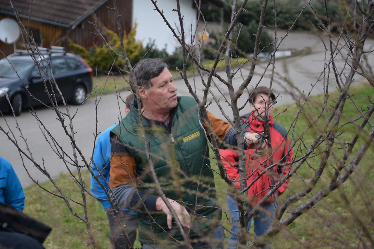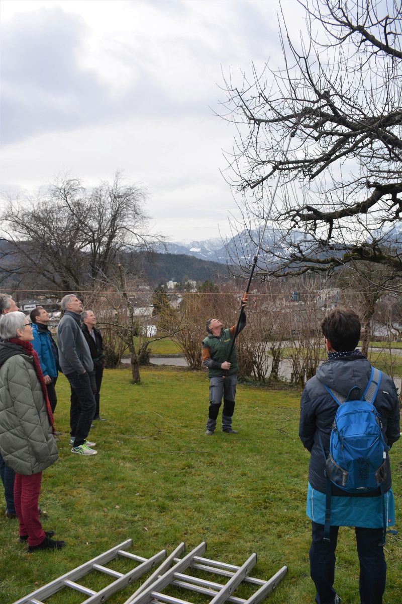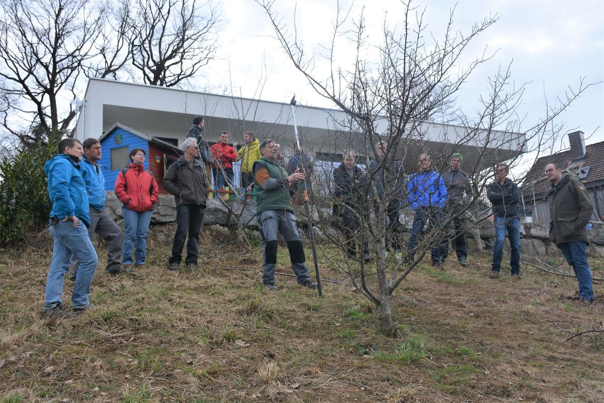 Gelungene Auftaktveranstaltung ins Jahr 2020 mit vielen interessierten Obstbaumliebhabern beim Sullnerberg in Sulz. Lothar Lins zeigte uns praxisnah an unterschiedlichen Busch- Spindel- und Halbstammbäumen die richtigen Schnitt- und Pflegemaßnahmen.