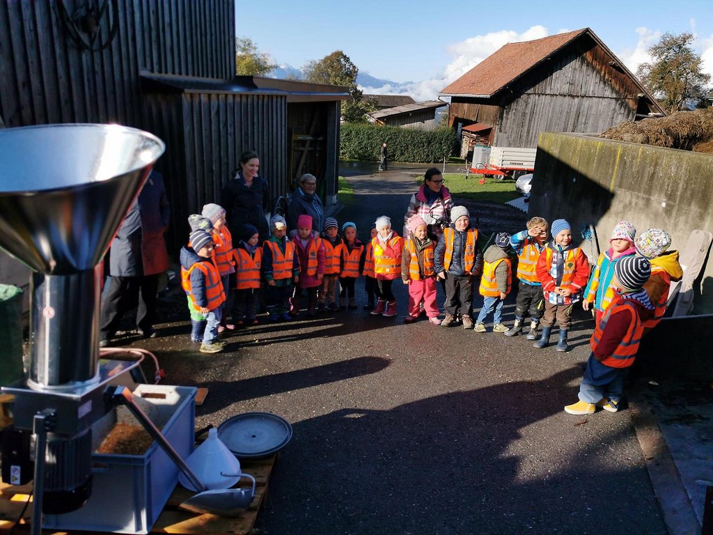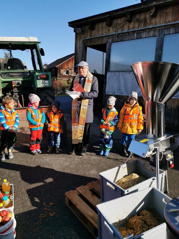 Am 7.10.2019 feierte der OGV Übersaxen mit den Kindergärtlern ihr jährliches Erntedankfest. Dabei durfte das Süßmostpressen bei Günther Breuß natürlich nicht fehlen. Nach der Segnung durch Pfarrer Peter Haas wurden die Kinder von Ingrid, Günther, Ludwig und Aaron mit frisch gepresstem Apfelsaft verwöhnt.