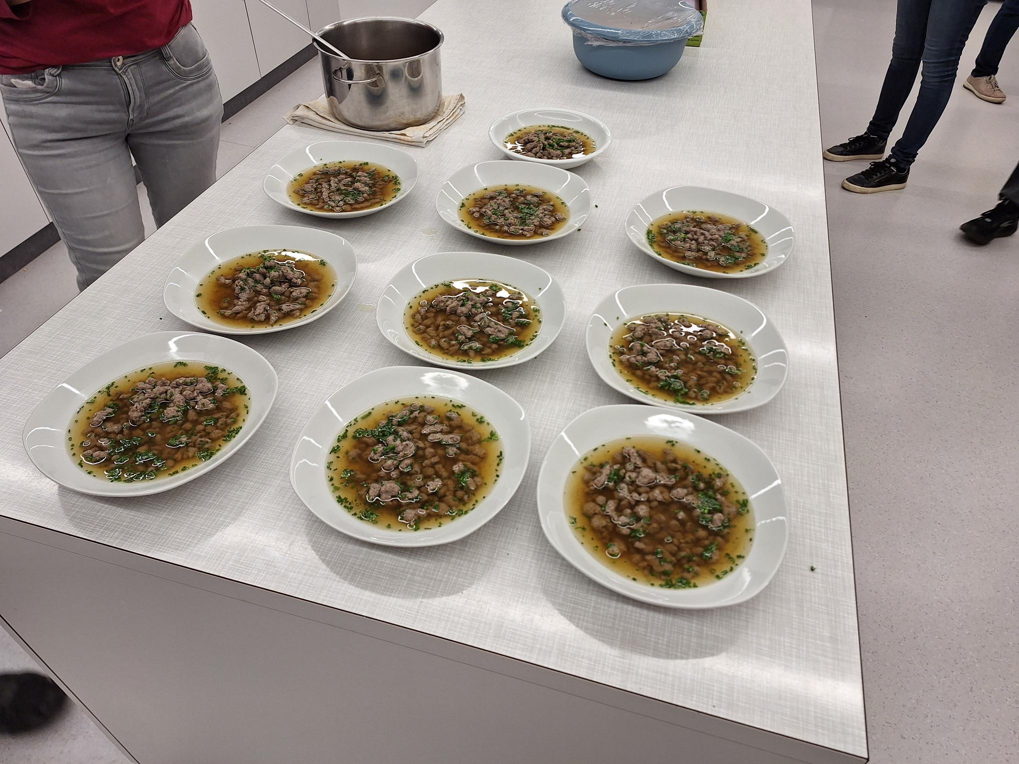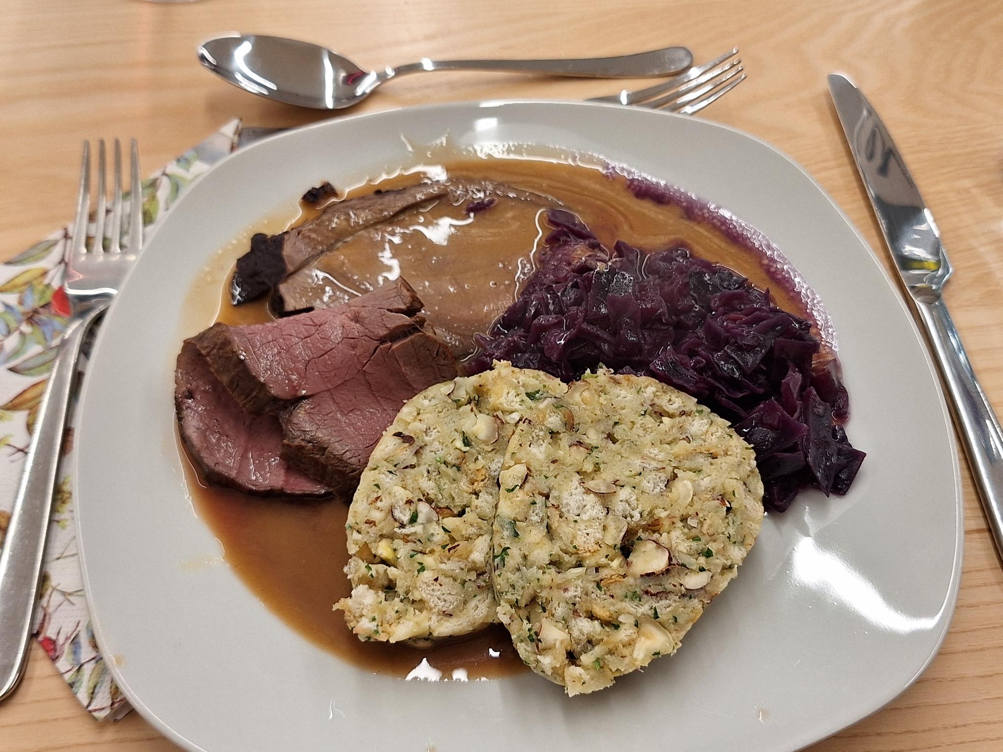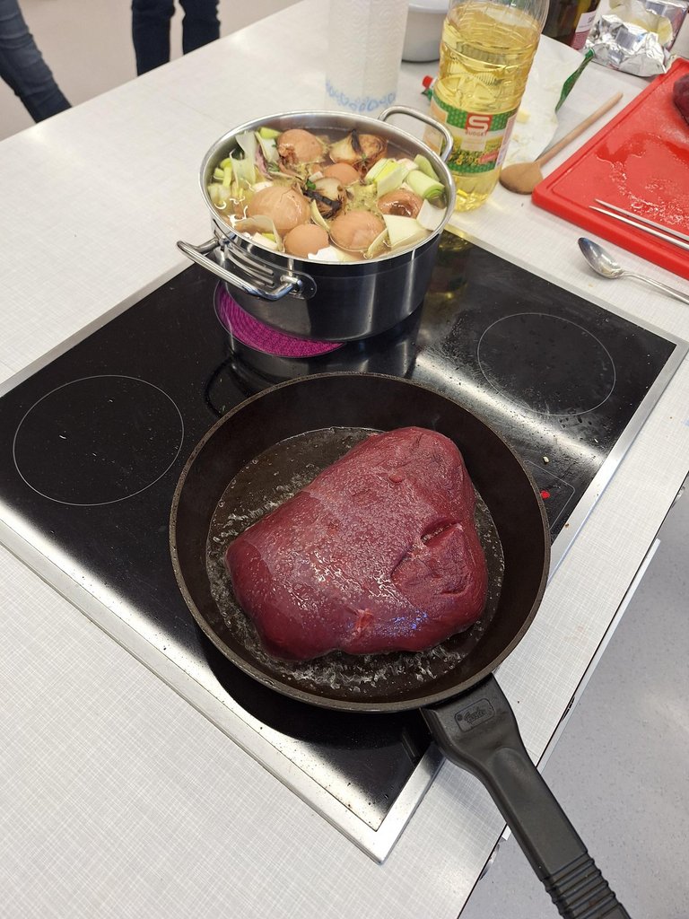 Eine kleine Gruppe vom OGV hat am Kochkurs teilgenommen. Gekocht wurde eine Leberspätzlesuppe zur Vorspeise, Hirschbraten mit Semmelknödel und Blaukraut als Hauptgang und als Nachspeise ein Apfel-Kürbis-Crumble.
