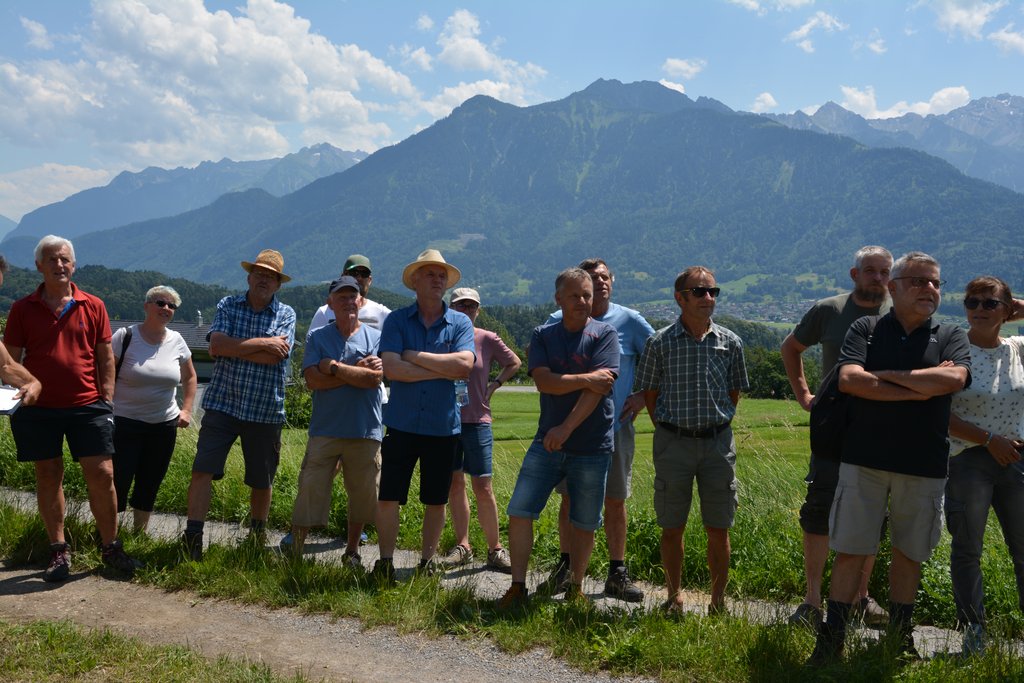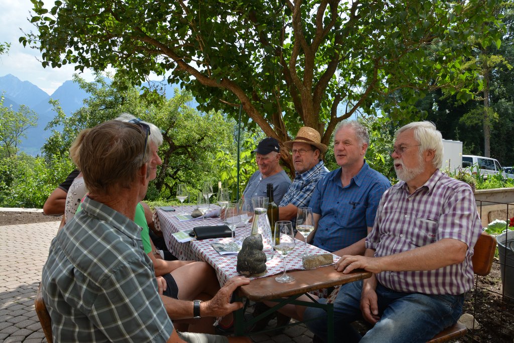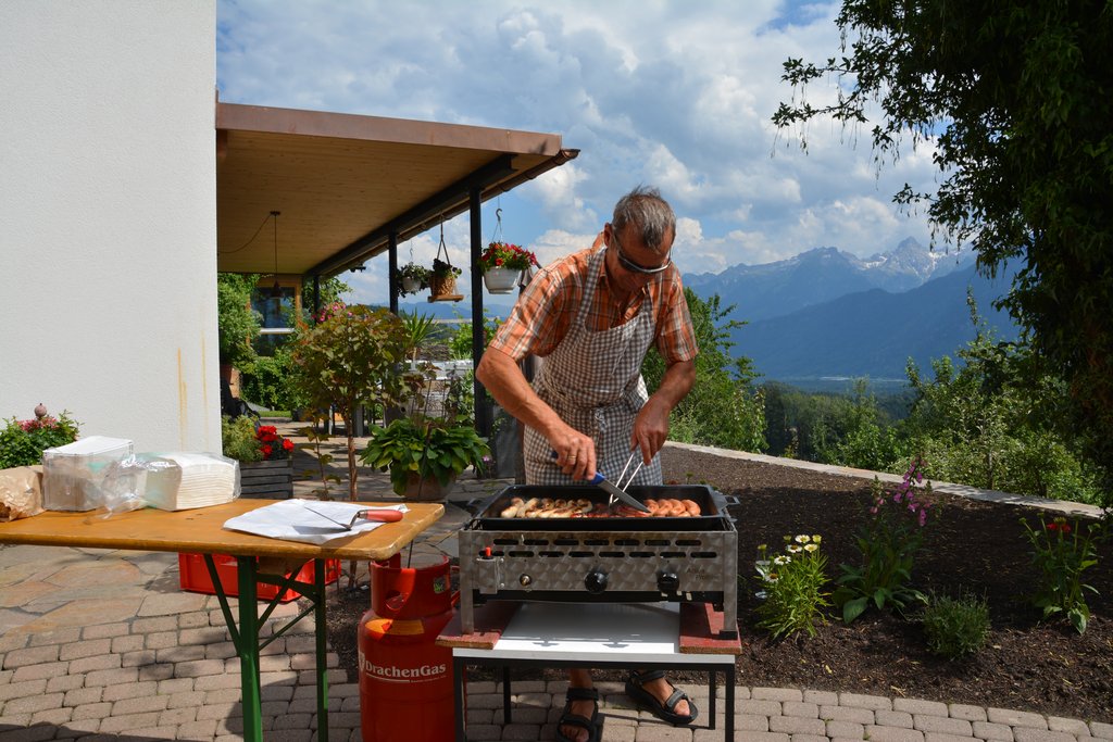 Im Anschluss begeben wir uns zu Gohm‘s nach Düns zum gemütlichen Baumwärterhock. Hier grillt Obmann Armin Rauch köstliches vom Bioschwein, Elmar Speckle und Sigrid Schertler haben Kuchen beigesteuert.
