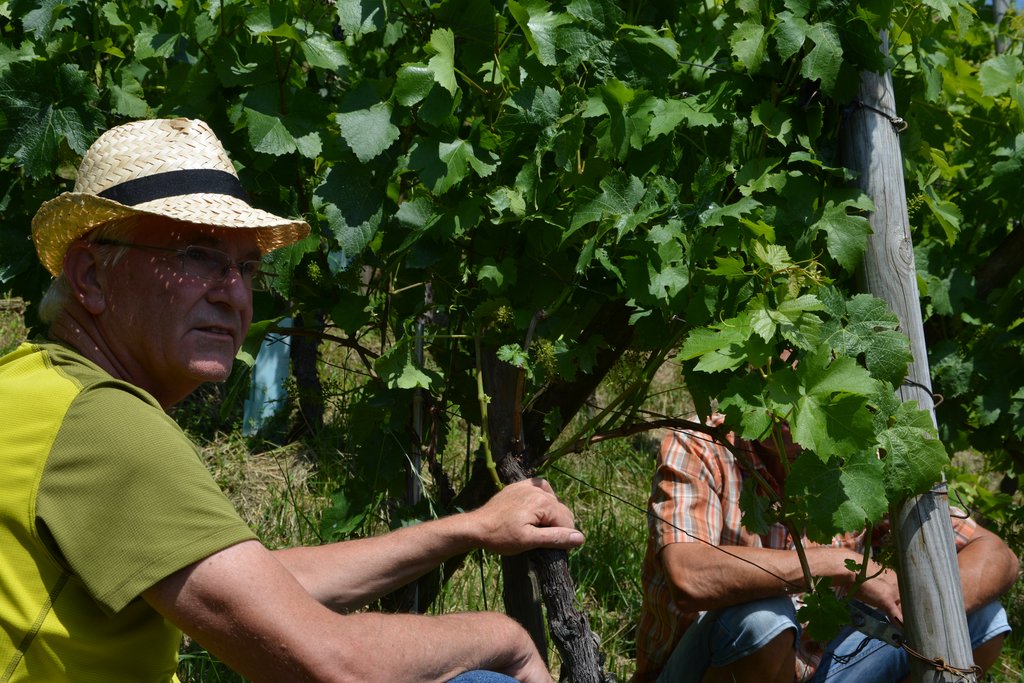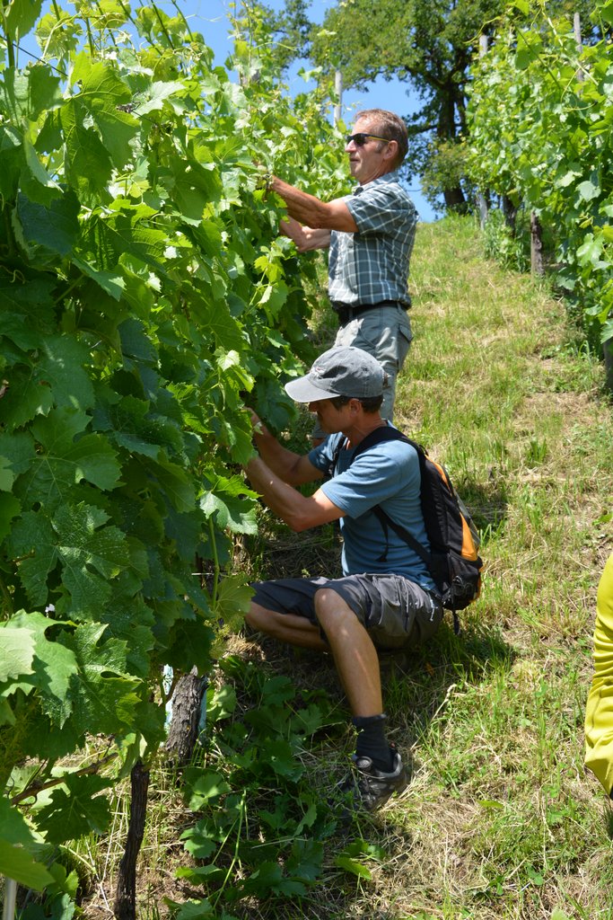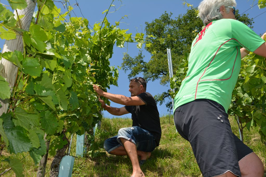 Der Weinbauer, Robert Gohm, unterstreicht die Wichtigkeit der Laubarbeiten als Vorbeugung gegen Krankheiten, allen voran der gefürchtete Mehltau.