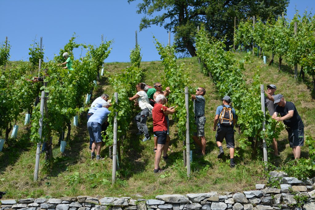Damit die Reben gut gedeihen, ist zuallererst eine gute Grundversorgung an Wasser nötig. Als Schutz vor Verdunstung haben die Blätter eine Wachsschicht auf der Oberseite. Dennoch braucht ein Rebstock bis zu 300 Liter/m²/Jahr an Wasser. Schon im Frühjahr bestimmt der Bauer mit dem Schnitt das Ernteziel. Es werden pro Stock 8-10 Triebe belassen, und je Rute 2 Trauben. Somit können im optimalen Verlauf 1,8 bis 2 kg Trauben geerntet werden – was ca. 2 Liter Wein ergibt.