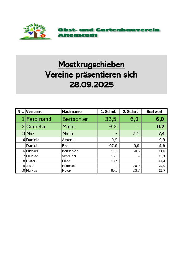 Das Schaumosten war besonders bei den jüngsten Besuchern beliebt. Am Stand konnten sich Gartenliebhaber über die verschiedensten Themen informieren.Die eigens von Peter Mähr konstruierte Mostkrugschiebebahn stieß auf regen Zuspruch.Es wurde um die besten Ergebnisse gewetteifert.