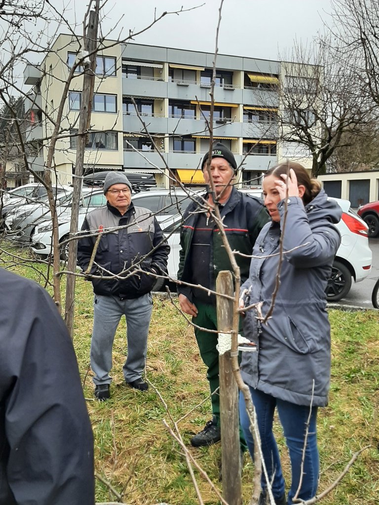 Es wurden 3 Gruppen gebildet. Jetzt, beim praktischen Teil, kam als 3. Baumwärter Herr Thomas Breuss hinzu.